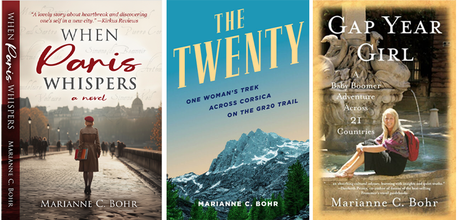 Marianne C. Bohr is a published author and award-winning essayist with a lifelong weakness for faraway places. A former travel blogger for The Huffington Post, she married her high school sweetheart-now her favorite travel partner-and they have been hitting the road together ever since. Her first book, Gap Year Girl: A Baby Boomer Adventure Across 21 Countries, grew out of a yearlong sabbatical she and her husband spent wandering across Europe. Her second, The Twenty: One Woman's Trek Across Corsica on the GR20 Trail, chronicles hiking across Europe's toughest footpath. After years in publishing and teaching middle school French, Marianne now lives in Park City, Utah, with her ski- instructor husband, where she skis, hikes, and writes-sometimes all in the same day.